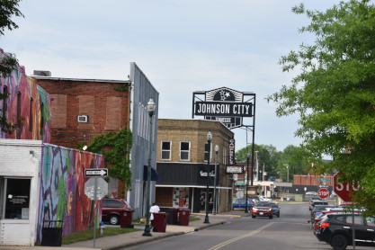 A sign announcing Johnson City, Tennessee before we walked back to the Johnson City Railroad Experience.