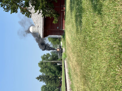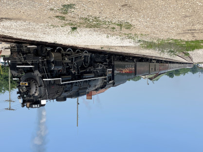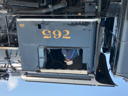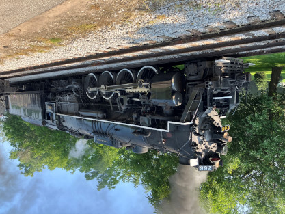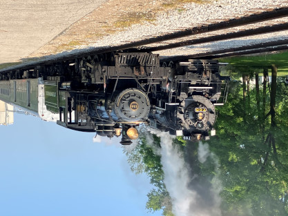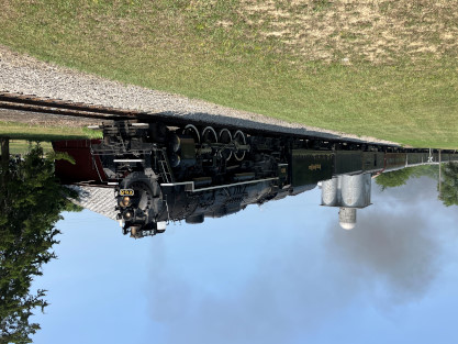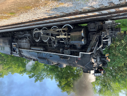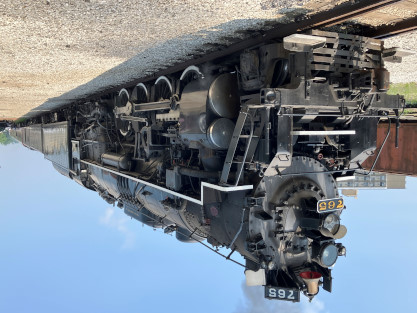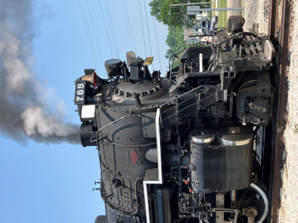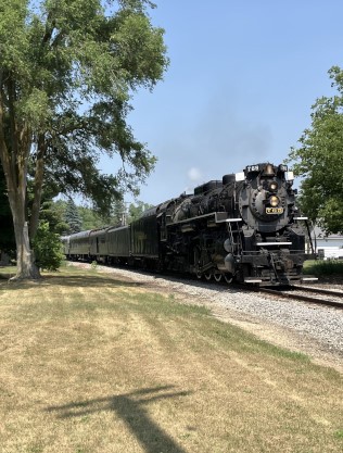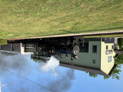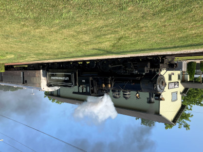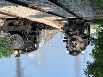 The two steam engines starting to move so they could switch, thereby allowing 765 to couple onto our train and leaving 110 in Quincy to return to Coldwater.