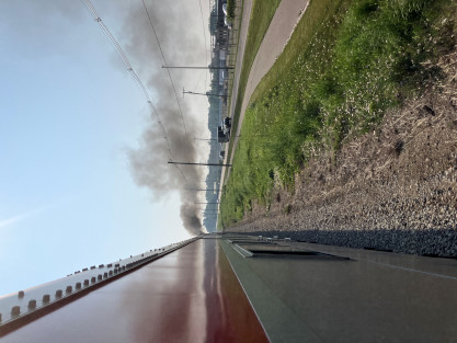 My lovely wife enjoying the scenery and sounds of Nickel Plate Road 765 in one of her favourite locations; the others are a fully open car and a vestibule. Photographs by Ron Gawedzinski, St. Louis Chapter national representative. We the ran the rest of the way to Hillsdale.