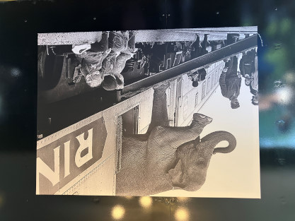 One of the posters of elephant unloading when it was used on the Ringling Brothers Barnum and Bailey Circus train. We arrived at Quincy and detrained for the engine swap.