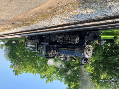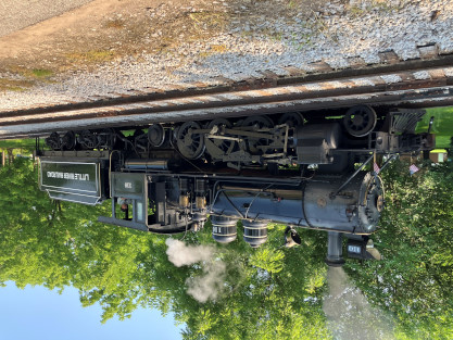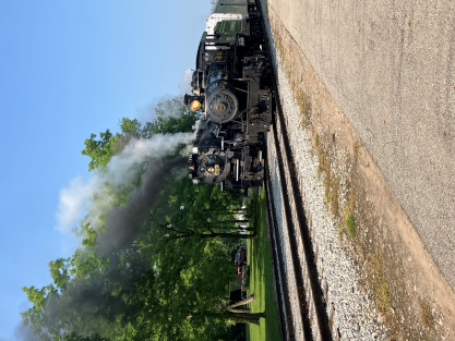 Photo runby one in the station area. Little River Railroad 4-6-2 110 was built by Baldwin in 1911, weighs about 58 tons and is the smallest Pacific built for a standard gauge railroad. It was custom-built for the original Little River Railroad in Townsend, Tennessee and ran until 1939 in what is now Great Smoky Mountain National Park. The engine hauled log trains from the forest to the lumber mill. In 1940, the engine was sold to the Smoky Mountain Railroad until the 1950's then in the 1960's, it was abandoned in Shook's Gap, Tennessee. In 1972, the engine was purchased by the current Little River Railroad in Coldwater, Michigan where it has run longer than in regular service.