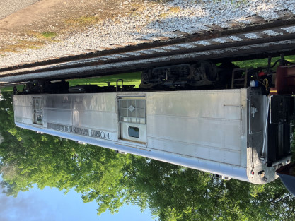 Fort Wayne Railroad Historical Society dining car 8551 "Silver Diner", ex. Amtrak 8551, exx. Amtrak 8500, nee Chicago, Burlington and Quincy 164 built by Budd Company in 1948. It was acquired from Amtrak in 2019 and restored in 2022.