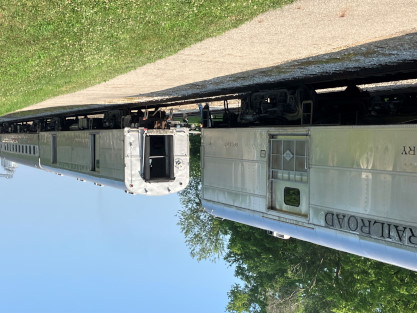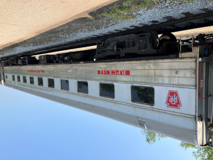 RPCX coach 148 "Collinsville Inn", ex. Cuyahoga Valley Railroad NRHX 148, ex. Maryland Area Regional Commuter 148, exx. Southeast Michigan Transportation Authority 108 "Hazel Park", exxx. Penn Central 1508, nee Pennsylvania Railroad 21 roomette sleeping car 8254 built by Budd Company in 1949. It operated through Fort Wayne, Indiana during its original careers. Converted to a traditional coach in 1963 for the World's Fair in New York City, 148 wound its way through commuter train service until were eventually obtained and renovated by the National Railway Historical Society (Washington DC Chapter) in 2008. It operated in occasional rail excursion service and was in limited seasonal use when purchased in mid-2022.