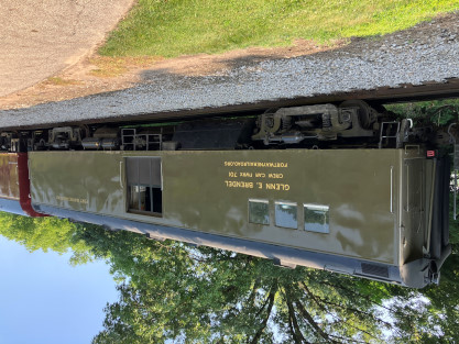 FWRX crew car 701 "Glenn E. Brendel", ex. Kentucky Railroad Museum concession car, nee United States Army kitchen car 89665, built by St. Louis Car Company in 1953. It was stored for over twenty years before being acquired by the Kentucky Railroad Museum and used as a concession car. In 1979, it was utilized on the 765's first excursions to Argos, Indiana in July 1980. It has been converted into a tool car for use on excursions with the 765. Changes include a generator, workbenches, tool cabinets, welder, steam locomotive servicing equipment and supplies and seating.