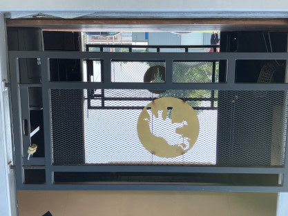 The interior of FRWX open air dining car 5735, ex. Ringling Brothers Barnum and Bailey 60019 1999, exx. Union Pacific 904261 1970, exxx. Union Pacific 24461 1969, nee Union Pacific postal storage car 5735 built by American Car and Foundry in 1957. It was in service as an elephant car until the last circus trains were operated in May 2017.
