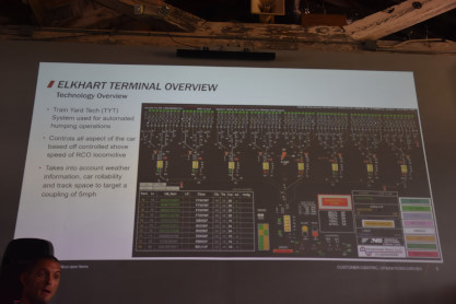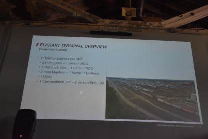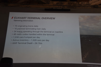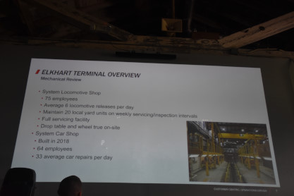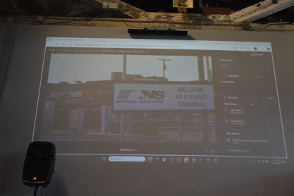 At 2:00 PM, everyone gathered in the freight room of the museum to listen to Geoff Craker, Assistant Superintendent of the Great Lakes Division of Norfolk Southern. He provided a visual overview, as well as a safety briefing, on the last tour of the day, which was at the railroad's Elkhart Hump Yard.