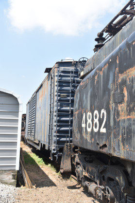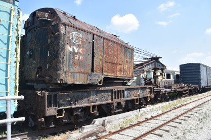 New York Central idler car 504472 for crane X-13, built by Industrial Brownhoist in 1949. It was the first of four oil fired, self-propelled steam cranes built by the company and was based in Selkirk, New York then donated by Conrail in 1997.