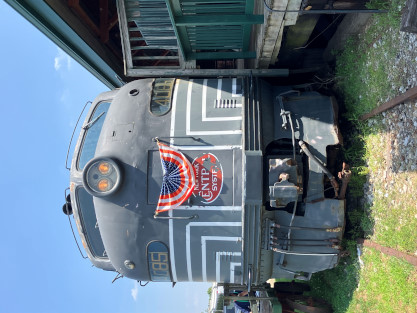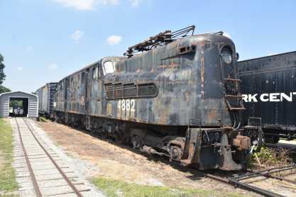 Pennsylvania Railroad GG1 4882 built by the railroad in 1939. The GG1 was designed to haul 12-14 passenger car consists on the railroad's electrified sections between New York, Washington, DC and Harrisburg, Pennsylvania. 4882 served on the Pennsy, Penn Central, Conrail, Amtrak and finally, New Jersey Transit. Retired in 1983, it was one of the last three GG1s to be used in revenue service, but had the honour of being the last GG1 to run under its own power when it pulled 4877 and 4879 into the Matawan, New Jersey yard after a "Farewell to the GG1s Day". It arrived in Elkhart in 1989 and was repainted in Penn Central livery in 1998. Today, it is the only one of the sixteen surviving GG1 locomotives to wear the black Penn Central livery.