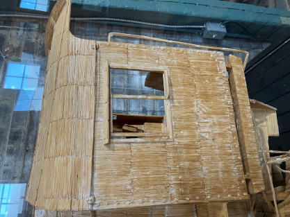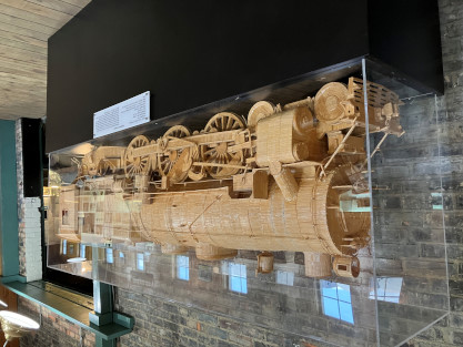 Terry Woodling of Warsaw, Indiana built this toothpick K4 Pacific over a period of seven years, completing it in 1991. It is eight feet long and a one-sixth scale model of Pennsylvania Railroad 4-6-2 417. It contains 40 lbs. of glue and 421,250 toothpicks and its wheels, side rods, brakes and windows all move.