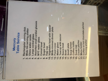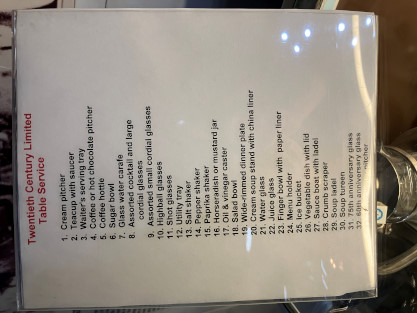 Each piece of china or cutlery was numbered and these are the descriptions.