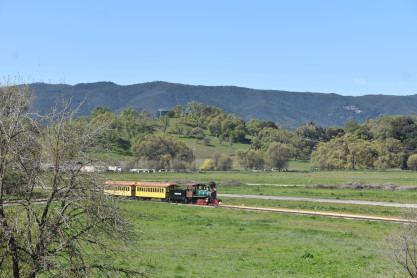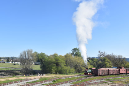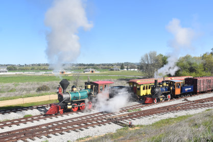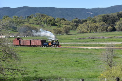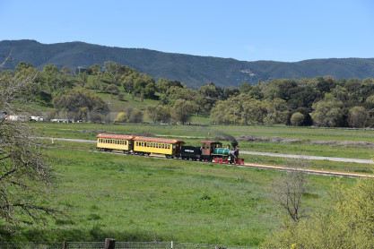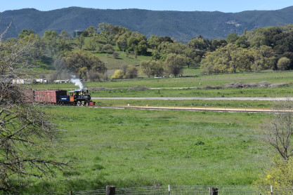 Pacific Coast Railroad 2 pulls its train, photo runby eight.