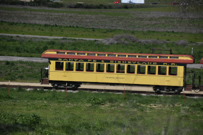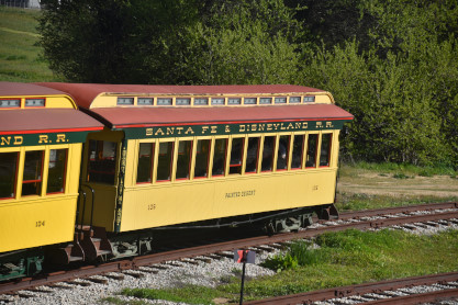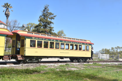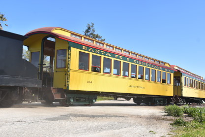 Former Disneyland Railroad coach 104 "Land of Pueblos" built by the Walt Disney Shops in 1955 and was part of the Retlaw 1 trainset used from Disneyland's opening in July 1955 until its retirement following the end of AT&SF's sponsorship of the railroad in 1974. Pacific Coast Railroad owner Rob Rossi acquired the coaches from the Bill Norred estate in 1999. The Norred family retains ownership of the combine, and the observation car from the set became the VIP car "Lilly Belle," which is still in service at Disneyland. This exquisite job was done by Sean Bautista and crew at the Hillcrest Shops in Reedley, California.