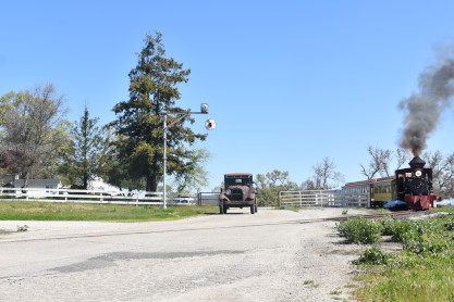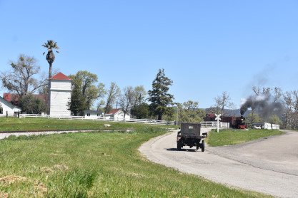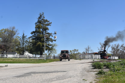 The Model A Ford 4000 made its way out of the yard to the boarding area.