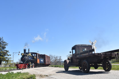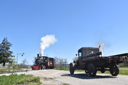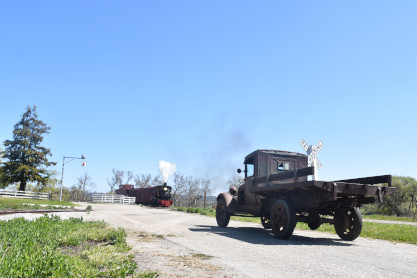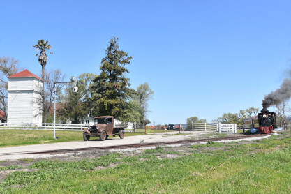 Pacific Coast Railroad 2 with the freight train, photo runby sixteen and the antique truck used as a prop.