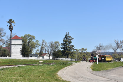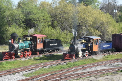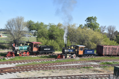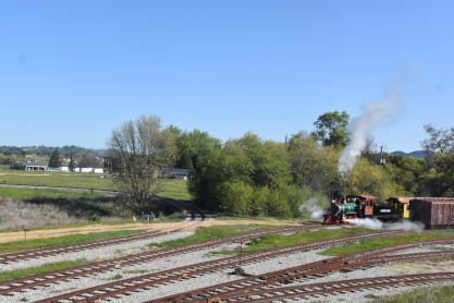 Pacific Coast Railroad 2 reversed from the boarding area to the upper yard to connect to our freight train. Photo runby one.