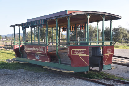 Hometown Orleans Street Railway trolley built by Custom Fabricators Trolley in 1976, which operated at Six Flags Great America and came to the ranch in the mid-1990's.