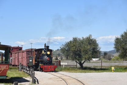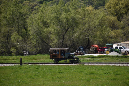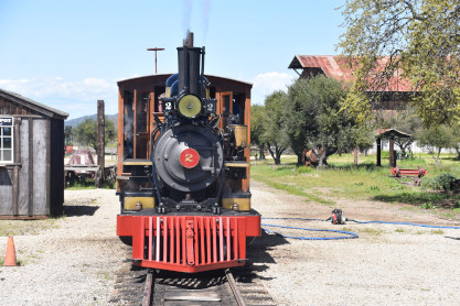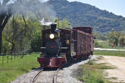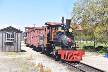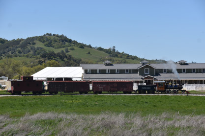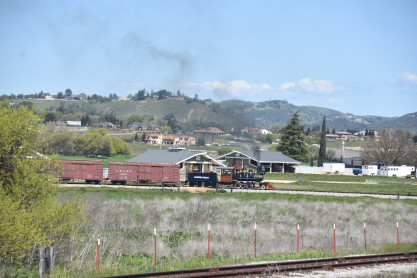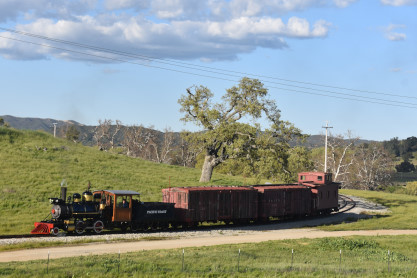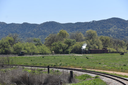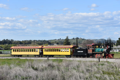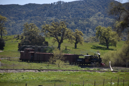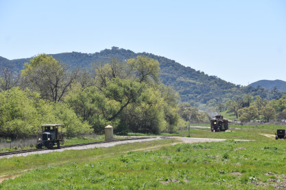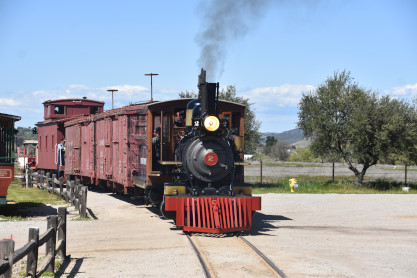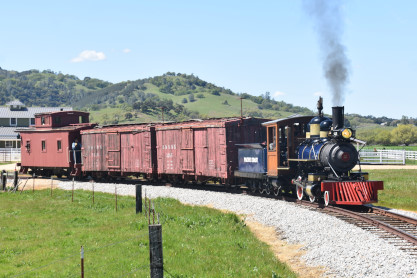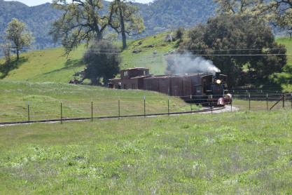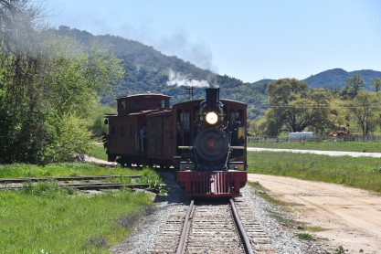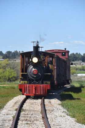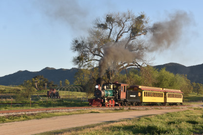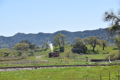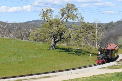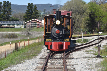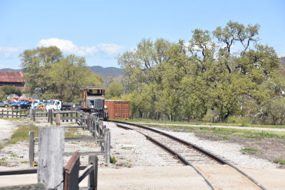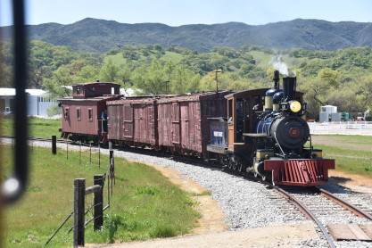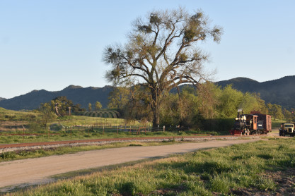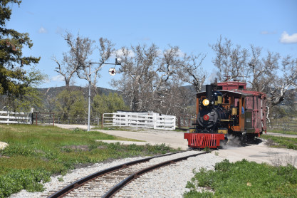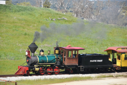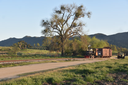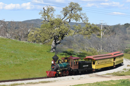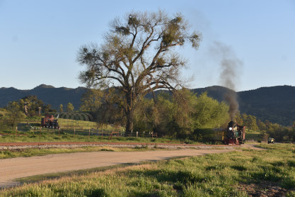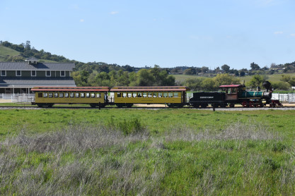 The passenger train leading the way around the Santa Margarita Ranch.