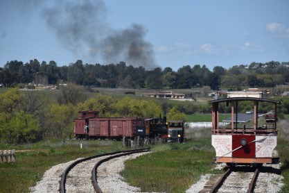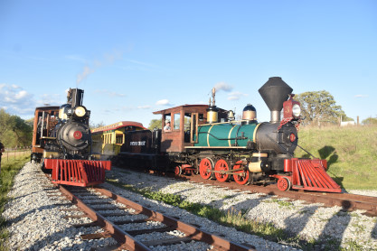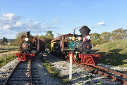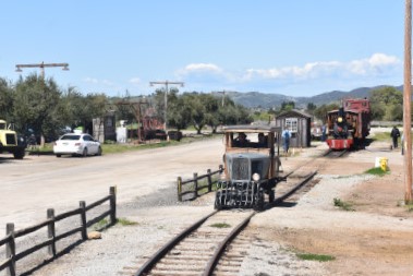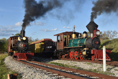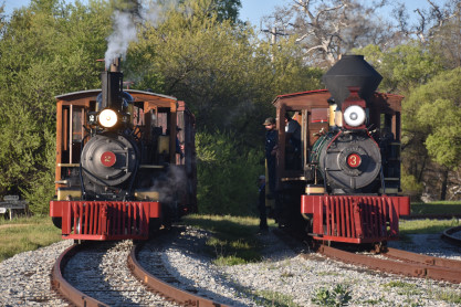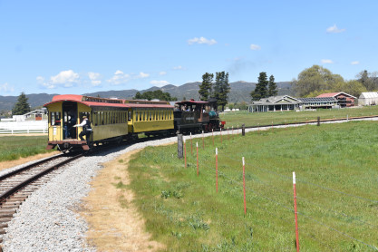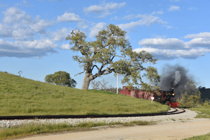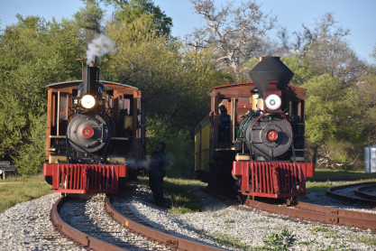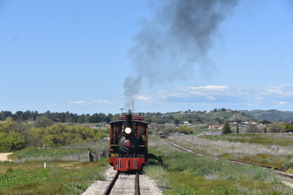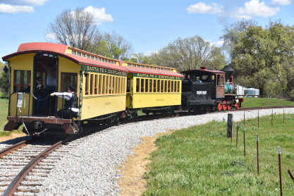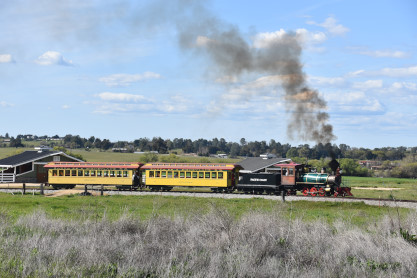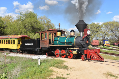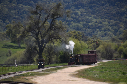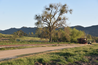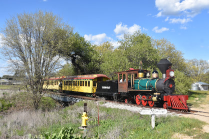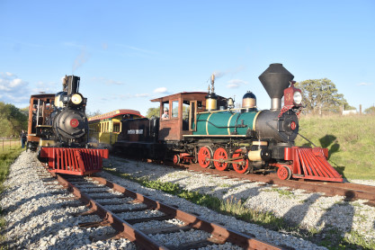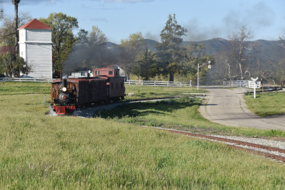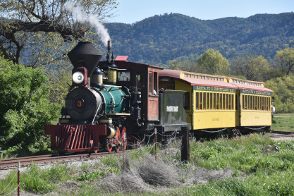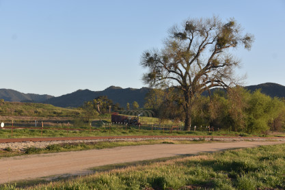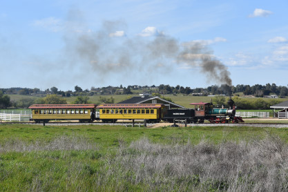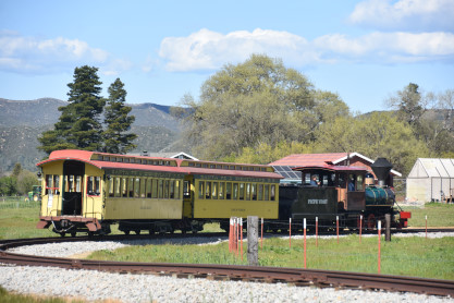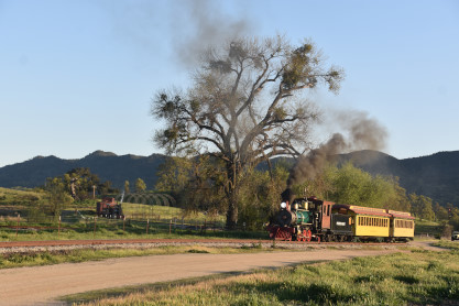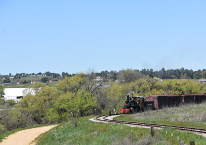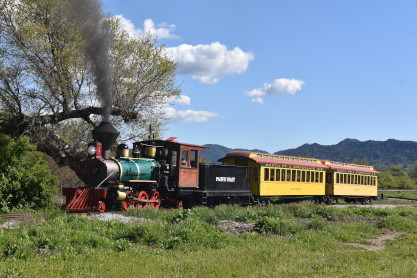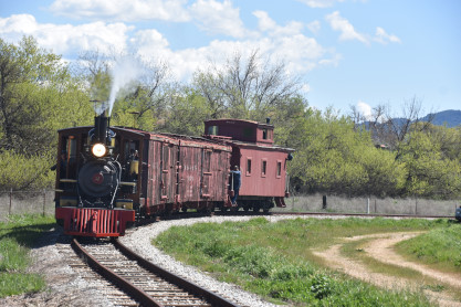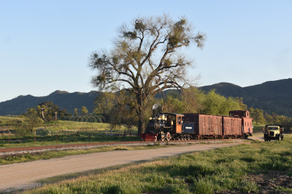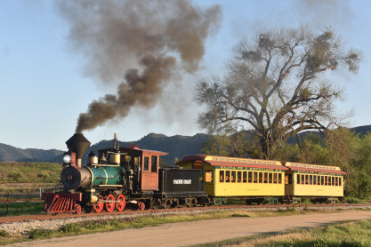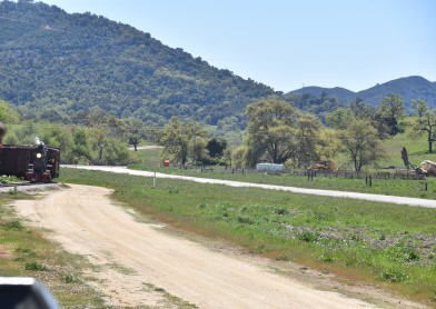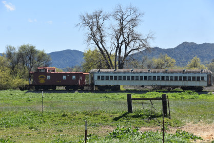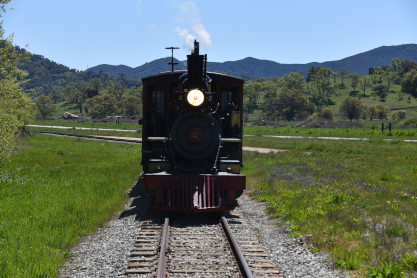 The passenger train leading the way around the Santa Margarita Ranch.