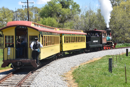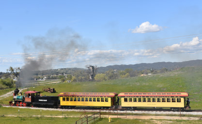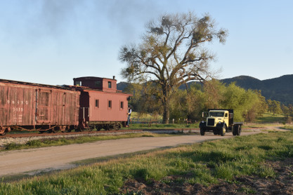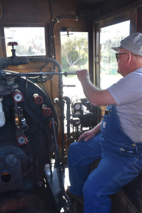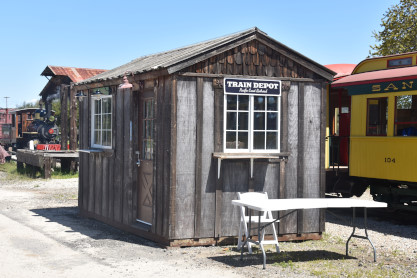 The train depot. Dak then announced that anyone who wanted to ride in the cab of the steam engine, the regular passenger cars, the caboose or in the back of the Model A Ford were welcome to do so, and many people took him up on his offer. Both Elizabeth and I chose the steam engine first.