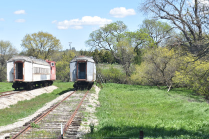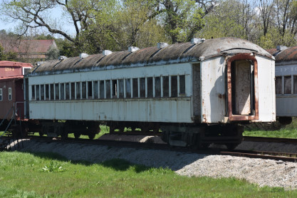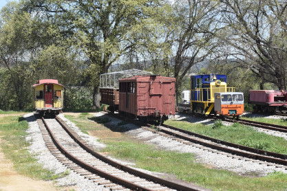 Two former Southern Pacific interurban coaches.