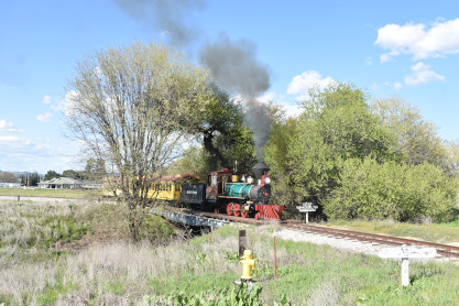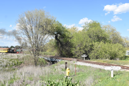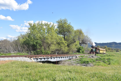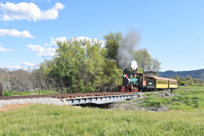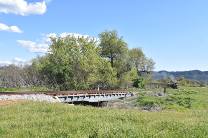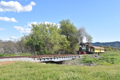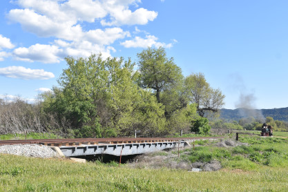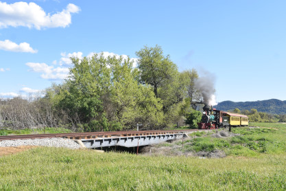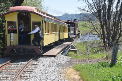 The passenger train travelling over the Tassajara Bridge crossing North Creek.