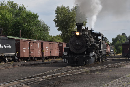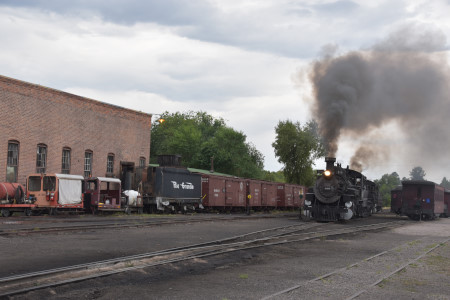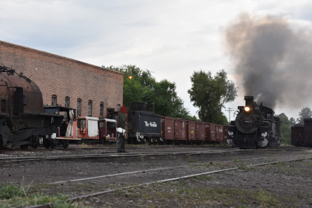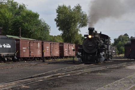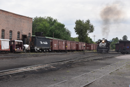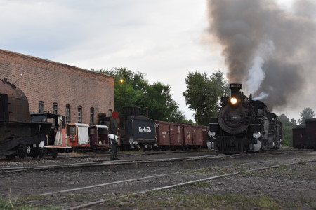 Cumbres and Toltec Scenic 2-8-2 487 switching in preparation for the triple-header..