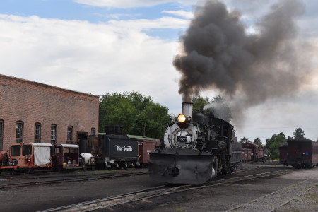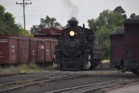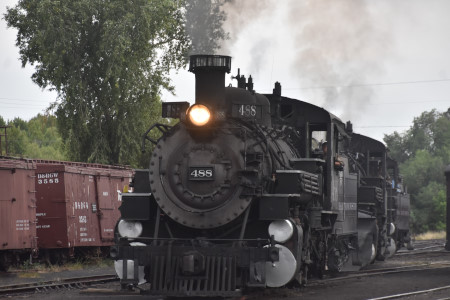 Cumbres and Toltec Scenic 2-8-2 K37 488 reverses in the yard.
