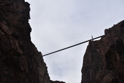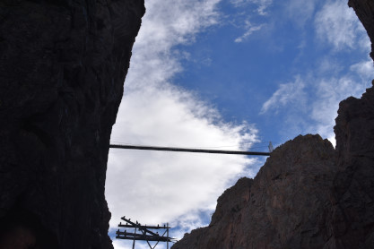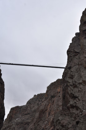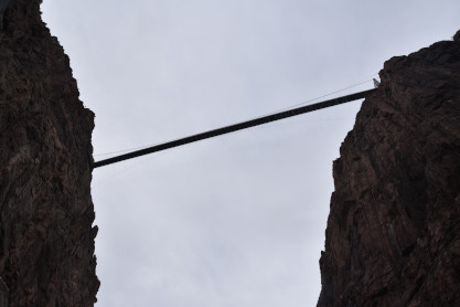 The Royal Gorge suspension bridge, the world's highest, was completed in 1929 and is 1,053 feet above the tracks. It spans 1,260 feet from rim to rim of the Royal Gorge, suspending 956 above the Arkansas River. A team of about 80 hardy men braved the heights and built the Royal Gorge Bridge, beginning June 5th, 1929. In just seven months, the men finished this engineering feat. The Royal Gorge Bridge opened to visitors for the first time on December 8th, 1929.