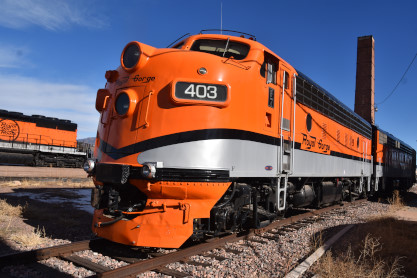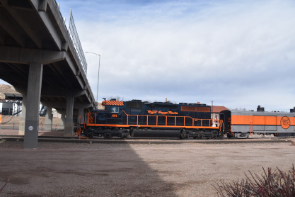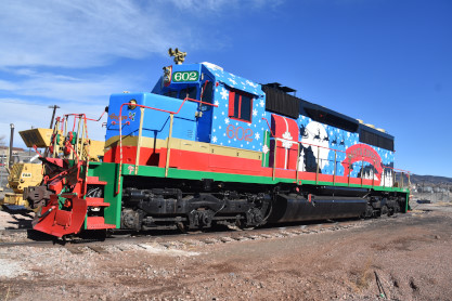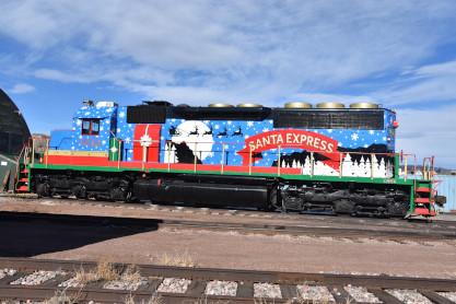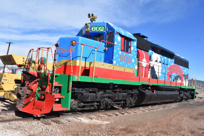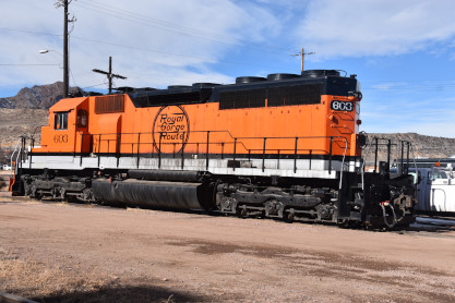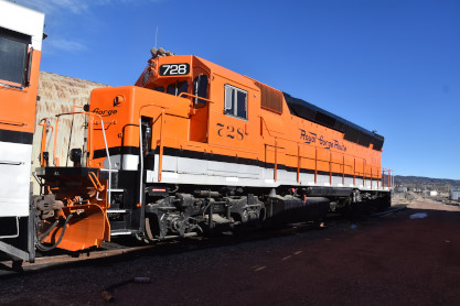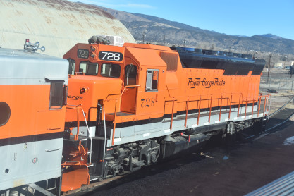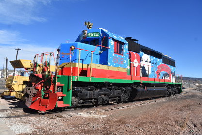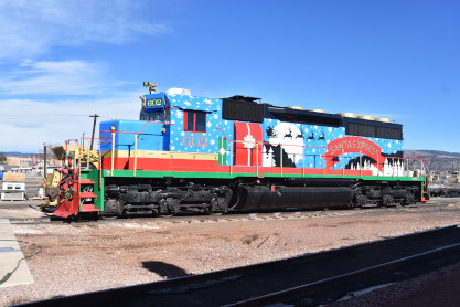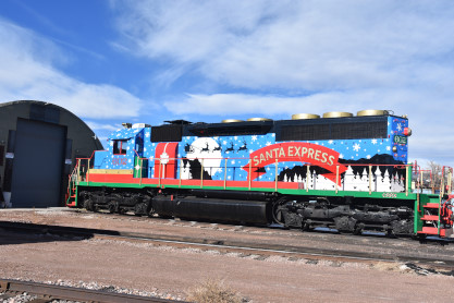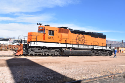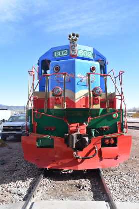 Royal Gorge Route Railroad SD40-3 602, ex. Escalante Western 2, Baltimore and Ohio 7598, nee Baltimore and Ohio 7498, built by Electro-Motive Division in 1969. It is the motive power for the Royal Gorge Express train at Christmas and was put into operation in 2023.