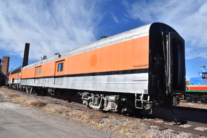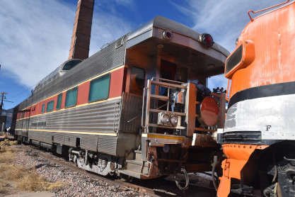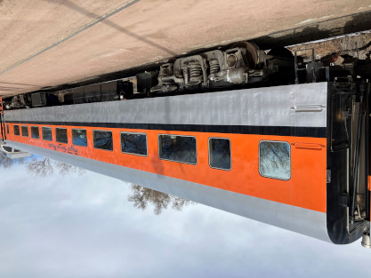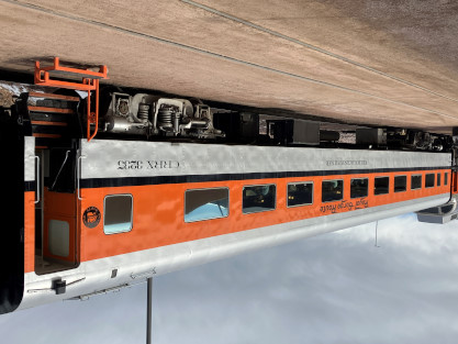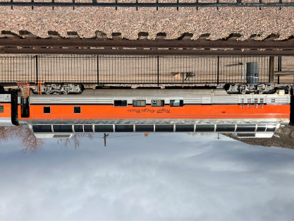 Chicago, Burlington and Quincy dome-lounge-open end observation car "Sierra Hotel" PPCX 800275, ex. Golden Arrow lease fleet, exx. Vandalia Railroad Club 1987, exxx. Amtrak 9811, exxxx. Burlington Northern 803, exxxxxx. Burlington Northern 251, nee Chicago, Burlington and Quincy 241, built by Budd Company in 1948. It was acquired by Royal Gorge Route in 2021.