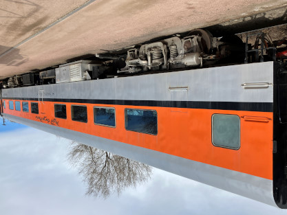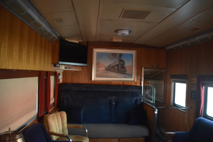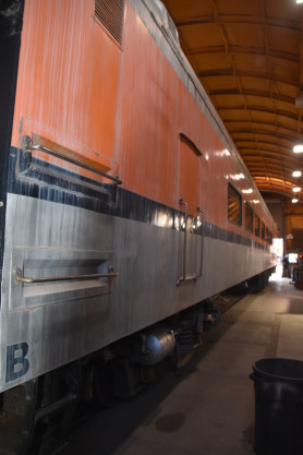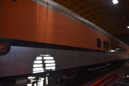 Inside the shops, we found club-galley 5581 "Theodore Roosevelt", ex. Canadian National 1971, exx. Canadian National 650 "Club St. Denis", converted from Canadian National 34-seat parlour car 583 "Lake Chapleau", built by Pullman-Standard in 1954.