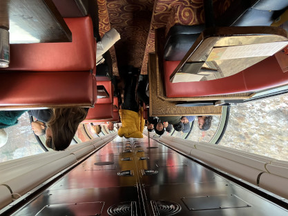 The two buses that brought us here. We then waited to board the train and Elizabeth purchased a Christmas ornament from the gift shop.