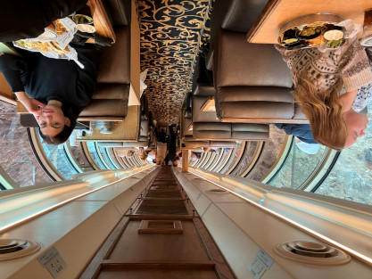Elizabeth and I walked to the front of the train and were allowed into the engineer's compartment as we passed the slide detector fence.