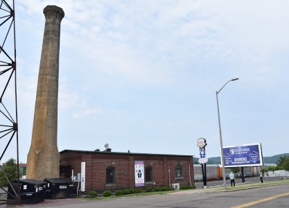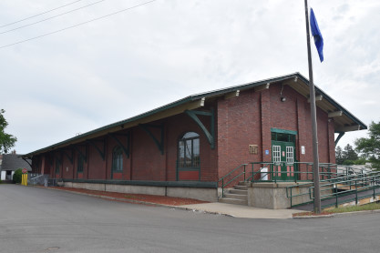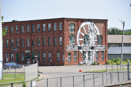 While not a station, this edifice, as seen from the Cortland Community Centre, still stands as testament to Cortland's role in America's great industrial age. The Cortland Corset Building, located at 75 East Court Street, in its heyday, employed more than 700 women, many of them Italian immigrants. The large industrial brick building, built in multiple stages starting in 1923, quickly became an anchor for the small city, which sits between Ithaca and Syracuse. It transformed into a burgeoning center for the production of ladies undergarments, particularly corsets. More than 100 years later, the Cortland Corset Building was still producing women's undergarments through a four- person partnership, Cortland Foundations (now Rago Shapewear). But by the turn of the 21st century, due to growing pressure on the American clothing industry from Asia, the partnership ended, and two of the partners — Peter Muehlbauer and John Dailey — opted out of the garment business and took over ownership of the Cortland Corset Building as part of their exit agreement.