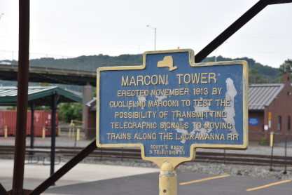 Marconi Tower, the site of famed radio inventor Guglielmo Marconi's pioneering experiment successfully demonstrating that radio could be used to communicate to fast-moving vehicle. Until this time, radio communication had previously been conducted between ground stations and to slow-moving ships at sea. The 97 foot tower is the last remaining of four such towers erected by Marconi to test the feasibility of transmitting telegraph signals to trains moving along the adjacent railroad line.