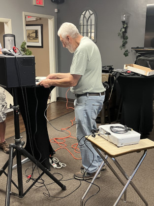 Bob Pastorkey, our guide and Vice-President of the Susquehanna Chapter of the National Railway Historical Society, setting up for his program of Stations and Railway Structures of the Binghamton area.