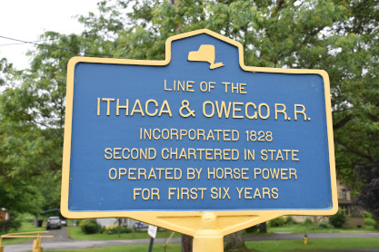 The Ithaca and Owego Railroad historical sign.
