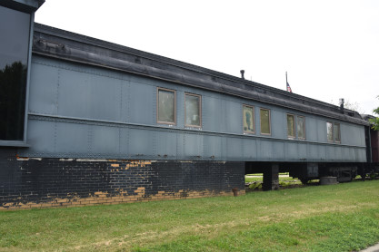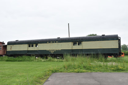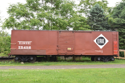 Erie Railroad 40 foot box car box car 7548 builder unknown, but constructed in 1928 and used in general freight service for many years before being repurposed. It was saved by the Chemung Valley Railway Historical Society in 2006 and moved to Eldridge Park in Elmira in 2007. Restoration has been undertaken by members of the society and the car will be used as the centerpiece in a railroad exhibit at the park. The Society was formed in 1996 with the goal of preserving the history of the railroads in the Chemung Valley area through the collection of photographs, memorabilia, artifacts and rolling stock.