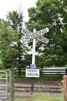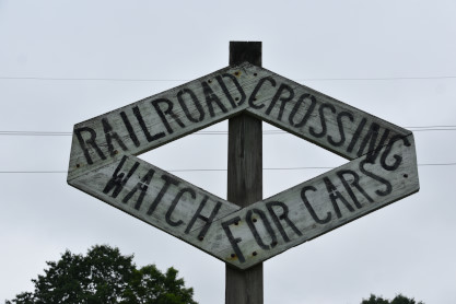 An old-style railroad crossing sign.
