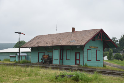 Lehigh Valley Flemingville wooden passenger depot built in 1902 and closed in 1935. The Tioga Transportation Museum opened for business here in 1975 and was the starting point for their excursion train, which started in 1984 as a Flemingville-to-Newark Valley run, but later expanded to the entire length of the line between Owego and Harford Mills.