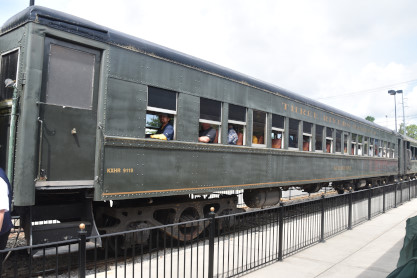 On a siding, we passed Gulf & Ohio business car 30 "Tennessee", ex. Seaboard System 309, exx. Seaboard Coast Line 309, exxx. Atlantic Coast Line 309, exxxx. Atlantic Coast Line 308:1 1944, nee Pullman "Manhattan", built by Pullman in 1916.