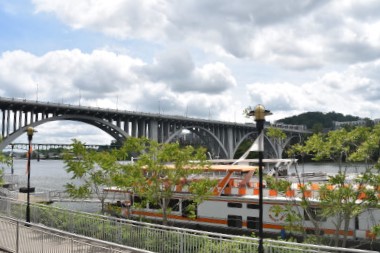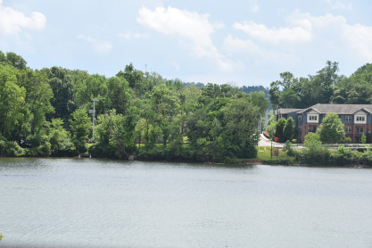 While partially obscured by the trees, this was our destination on the return trip. Experience the Star of Knoxville! This authentic paddlewheeler is fully enclosed, air conditioned, and heated for year round comfort. The vessel is equipped with two bars, a dance floor, band stage, and is exquisitely decorated for the most elegant dinner and entertainment available. From black tie events like weddings and receptions to a casual event like a football charter the atmosphere is right for any occasion.