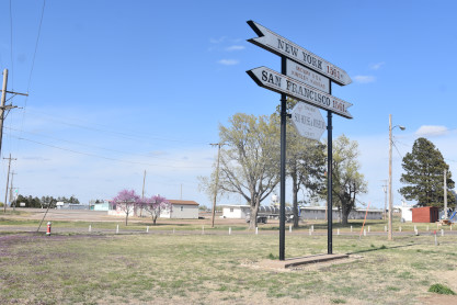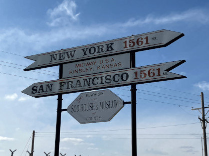 Kinsley is the mid-point between New York and San Francisco at 1,561 miles.