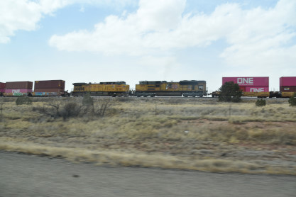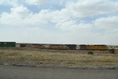 Mid-train DPU's 6469 and 8713. I drove from Tucumcari then west of Cline Corners, we switched again and Elizabeth drove to Albuquerque where we went to Cracker Barrel for dinner then checked into the Best Western Plus Rio Grande Inn for the night.