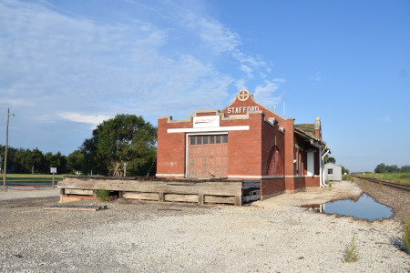 Santa Fe Stafford station built in 1911. Next on my agenda was a return visit to Kinsley, the mid-point between New York and San Francisco.
