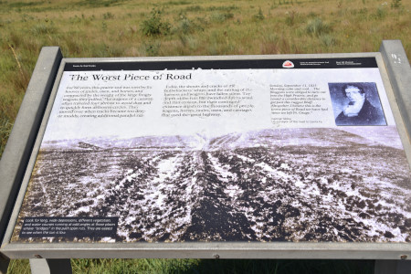 The Worst Piece of Road information board. The Santa Fe Trail served as the pioneer highway from 1821 to 1872 as a link from the east to Santa Fe, New Mexico. The trail allowed traders to move goods across the country safely and easily.
