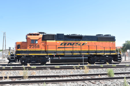 The local power, in the form of BNSF GP39-2 2368, ex. Burlington Northern 2368, nee St. Louis-San Francisco 698, built by Electro-Motive Division in 1972. My next stop was in Lakin.