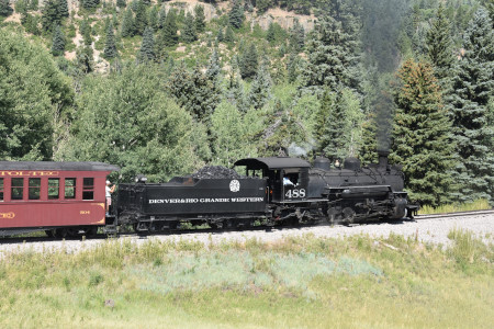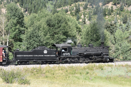 Denver and Rio Grande Western 4-6-0 168 built by Baldwin in 1883. It was on display in Antlers Park in Colorado Springs from 1938 to 2015 then was leased to the Cumbres and Toltec Scenic Railroad for forty-five years and was fully restored.