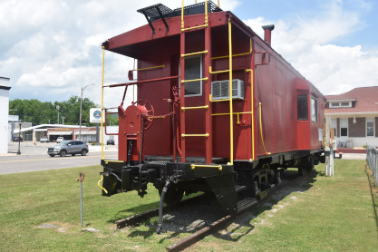 Seaboard System caboose 11078, nee Clinchfield 1078, builder and year unknown. It was formerly in Carthage Junction where it was built into a relocated station. Its current number of 38583 is the Sparta zip code.