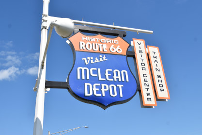 Historic Route 66 Visit McLean Depot sign.